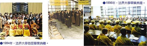 法界佛教大學經加州政府註冊立案,設有佛學研究與修持、佛經翻譯與語文研究、佛學教育、中國語文研究等科系的學士與碩士課程,並授予學位。無論出家人或在家人都可申請入學,經濟能力不足者,可申請獎學金。
