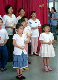 「一者禮敬諸佛;二者稱讚如來……」小小兒童,為阿公阿媽帶來「普賢菩薩十大行願」與「楞嚴咒句節偈」之背誦;可愛的表情與聲音,當然得到不少的掌聲。