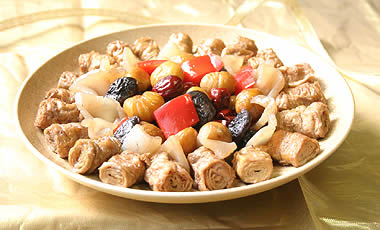 其調味再加入2大匙番茄醬、1/2茶匙糖同煮即成糖醋口味。