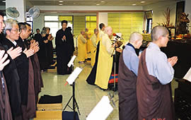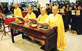 法界印經會農曆春節期間,由法師領眾禮拜《梁皇寶懺》,祈願眾生俱承懺悔之善緣,共證真常之妙道;並祝禱國泰民安、世界和平。