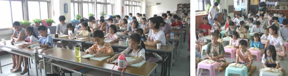 ◎快樂學習、學習智慧 上課時間:95年7月∼12月 每星期六上午8:30∼12:00 上課內容:四書五經、《孝經》、《楞嚴經》、佛教故事及打坐 招收對象:幼兒班(3~7歲)、兒童班(8~11歲) 、少年班(12~15歲)