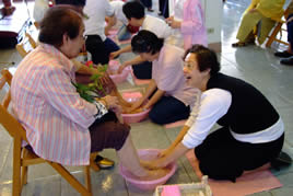 現代家庭少子化,父母多以子女為重心,事事替孩子打點周到,孩子們多視之當然,不易體會父母的辛勞。活動中,有幾件事讓我印象深刻,看到子女在替長輩洗腳的時候,雖未有對話,可是透過表情似乎將未曾表達過的感情觸發出來,以幫長輩洗腳表達對父母的感恩,讓長輩感受從腳底溫暖至心底的陽光!長輩們感覺著放鬆與放心,臉上充滿喜樂,站在一旁的我也感染到這股溫暖開心。愛是動詞,將感情化成動作,以慎重的心,幫長輩洗、搓、指壓以及最後將雙腳擦拭乾淨,殷切的希望長輩舒服自在、愉悅安寧。動作或許簡單,意義卻很深遠。洗腳,從外相上看,好像只是一個形式,但這形式的背後,有好多好多的用心。我們期許活動的結束正是孝心孝行的開始。希望所有的孩子都是有善根,社會充滿著希望與和諧。