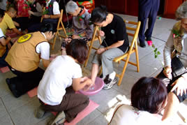 法界在今年敬老節的活動中加入監察院愛心會的洗腳敬親活動,當天活動的主角~長輩們在熱心的義工招呼之下依序坐定後揭開序幕。