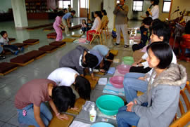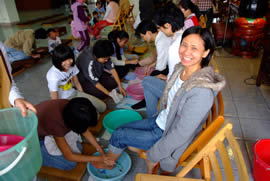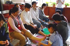 ¬X©Mªºµ¼Ö¤¤¡A¦³µÛ«Ä¤l¸÷¦b¶ý¶ý«e¡A´À¶ý¶ý¬~¸}ªºµe±¡F¶ý¶ýÌ®`²Ûªº±NÄû¤l²æ¥h¡A¥ú¸}¤X§e²{¦b«Ä¤l±«e¡A¶ý¶ýªº¸}¨S¦³¥ÕÕ®ªº¦Ù½§¡A¤]¨S¦³¬üÄRªº¸Ë¹¢¡A¯d¦b¸}¤Wªº¥u¦³¡u½K¯¾¡v¡C¨º¬O·³¤ë©Ò¯d¤Uªº¤@¼h¤@¼h«p«pªº¨¤½è©Mµõ·¾¡C