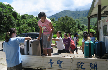 這是我第一次到花蓮彌陀聖寺,白色的觀音雕像矗立在綠意盎然的山間,讓人的心裡充滿了寧靜的味道!這裡果然是一個適合修身養性的好地方!接著幾天的勞動過後,發現娑婆世界裡的任何地方,果然都有苦澀的滋味,包括這裡──天氣這麼熱、小孩這麼皮、山路這麼長……修行果然不是一件簡單的事,要比誰的忍功強,要比誰最吃的了苦,還有那一顆最初發的心到底在不在,短短的幾天裡,讓我深刻的體驗到這些從無到有,而且在人力、資源有限的情形下,建立跟維護一座道場是多麼的不容易!我們真的該好好的反求諸己,在那麼好的環境之下,平日到底用功了沒?上人說:「修道不要貪快!」所以我們平日就要以平常心去做,利用零碎的時間也可以念念佛,所謂「行住坐臥都是修行」,初而勉強,但久成自然。阿彌陀佛!