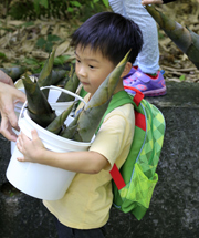 都會中的孩子對大自然鮮少接觸,為補其不足,這次安排三堂十分有趣的室外課程;第一堂是「採筍趣」,配合時令,讓孩子們去竹林中觀察並採筍,沒想到,孩童的觀察力十分敏銳,不一會兒的功夫,就採了滿滿三車的筍子,成就感十足。