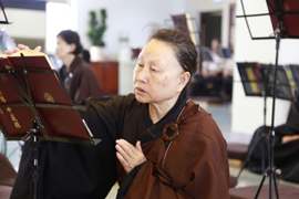 圓滿日當天上午參加浴佛的信眾相當踴躍,弟子們一方面浴佛,一方面也用佛教傳統儀式來表達對上人的孝念。很多信眾都扶老攜幼全家來浴佛,相信這樣的敬老懷少一定是上人所樂見的。下午恭誦《華嚴經》最後一卷〈普賢行願品〉,及禮拜上人十八大願和〈華嚴懺〉。希望藉著修習普賢行願和禮拜華嚴海會無盡三寶,讓華嚴法雨洗淨身語意。