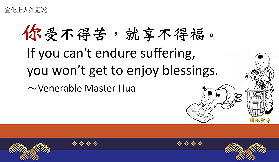 以上是 宣公上人禪七開示中的一句,勉勵弟子不要怕苦怕痛,用功修行。