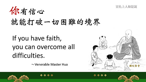 所以說:「你有信心,就能打破一切困難的境界」,這句話出自 宣公上人講解的《華嚴經.賢首品》。