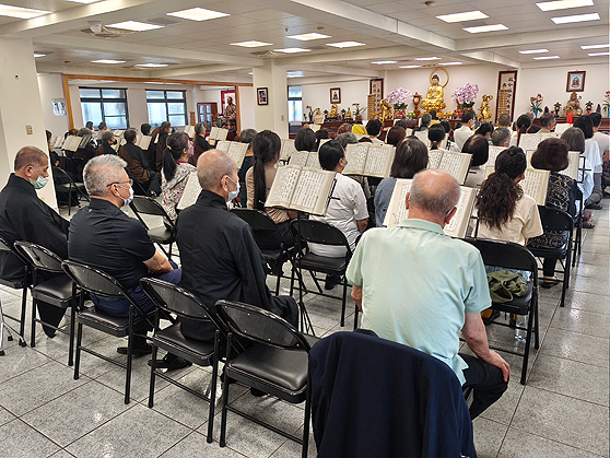 花蓮彌陀聖寺則於五月三十日至六月一日舉辦三日華嚴法會,恭誦《華嚴經.十地品》與〈普賢行願品〉,唱誦華嚴字母,並禮拜《華嚴懺》。大眾在誦經與梵唄的音聲中,體會菩薩修行的十地階位,開啟本具自性的智慧寶藏。宣公上人曾慈示:「十地法門,就包括一切的法門……想要得到解脫這種菩薩道,也要依照十地的法門來修行,才能得到這種解脫法門。」由此可見,十地不僅是菩薩行的階次,更是指引我們行菩薩道的寶貴指南。法會中,大眾隨文入觀,體會菩薩之智慧、行持與悲願,期許一步步邁向菩薩道。